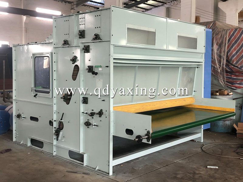 這是雙式喂毛斗,四個打手,四臺電機,雙方斜簾,喂料均勻,適合做無膠棉、硬質(zhì)棉、高檔次無紡布。